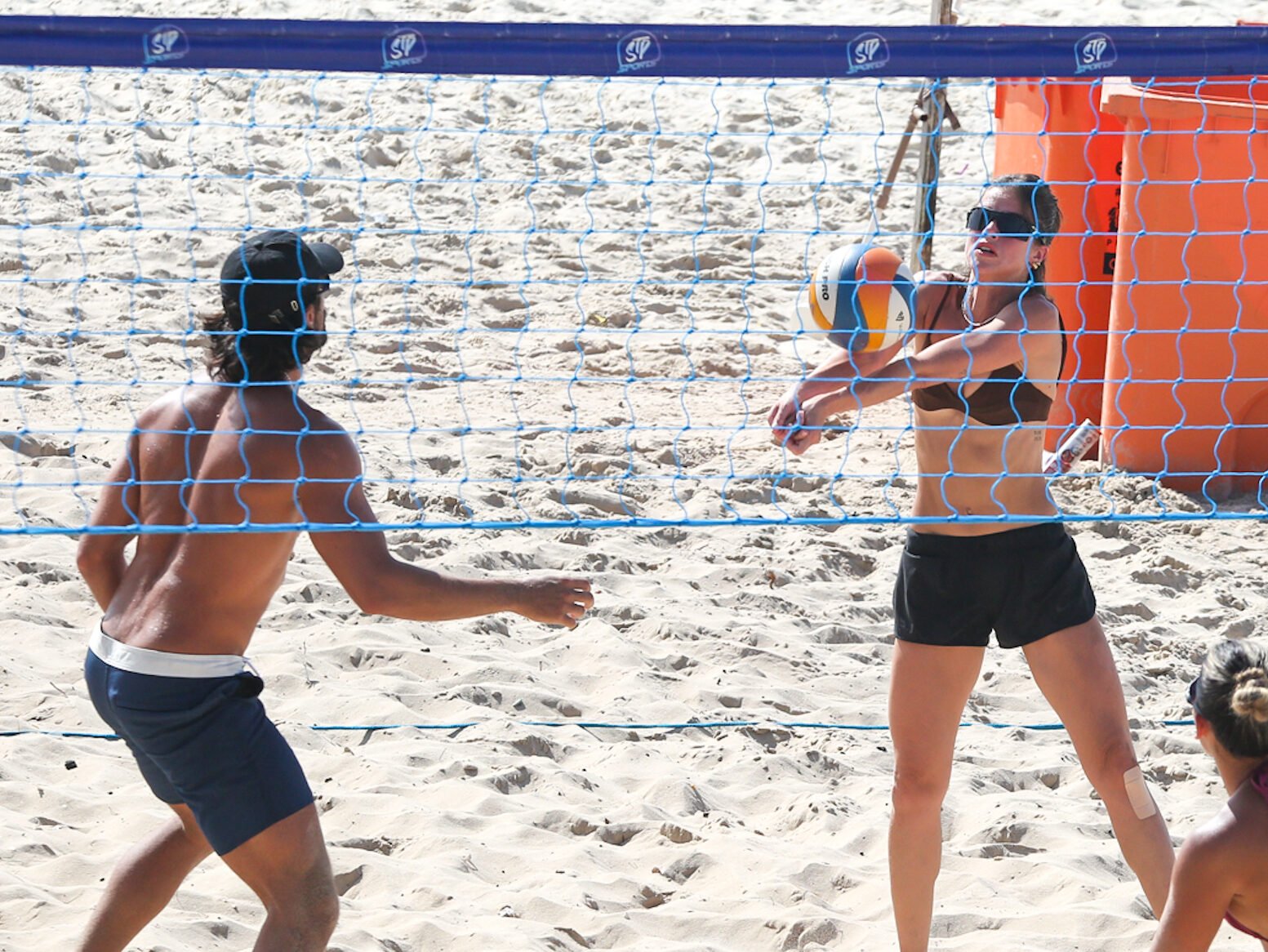 Agatha Moreira e Rodrigo Simas jogam vôlei na praia da Barra da Tijuca