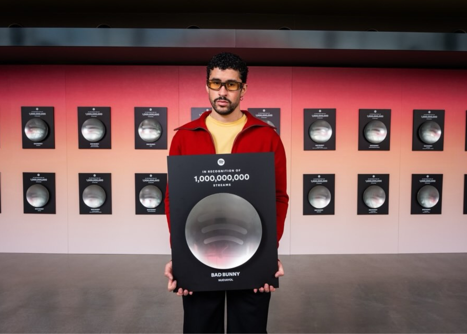 Bad Bunny celebra marco histórico e exibe “parede bilionária” com hits no Spotify