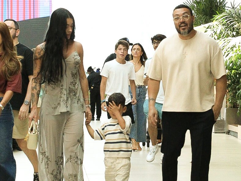 Durante o passeio, Belo caminhava ao lado de Rayane enquanto acompanhavam o filho, demonstrando sintonia e aproveitando o momento de descanso em família. O cantor, conhecido pela agenda intensa de shows e compromissos profissionais, parecia relaxado enquanto conversava com a companheira e observava o movimento do shopping.