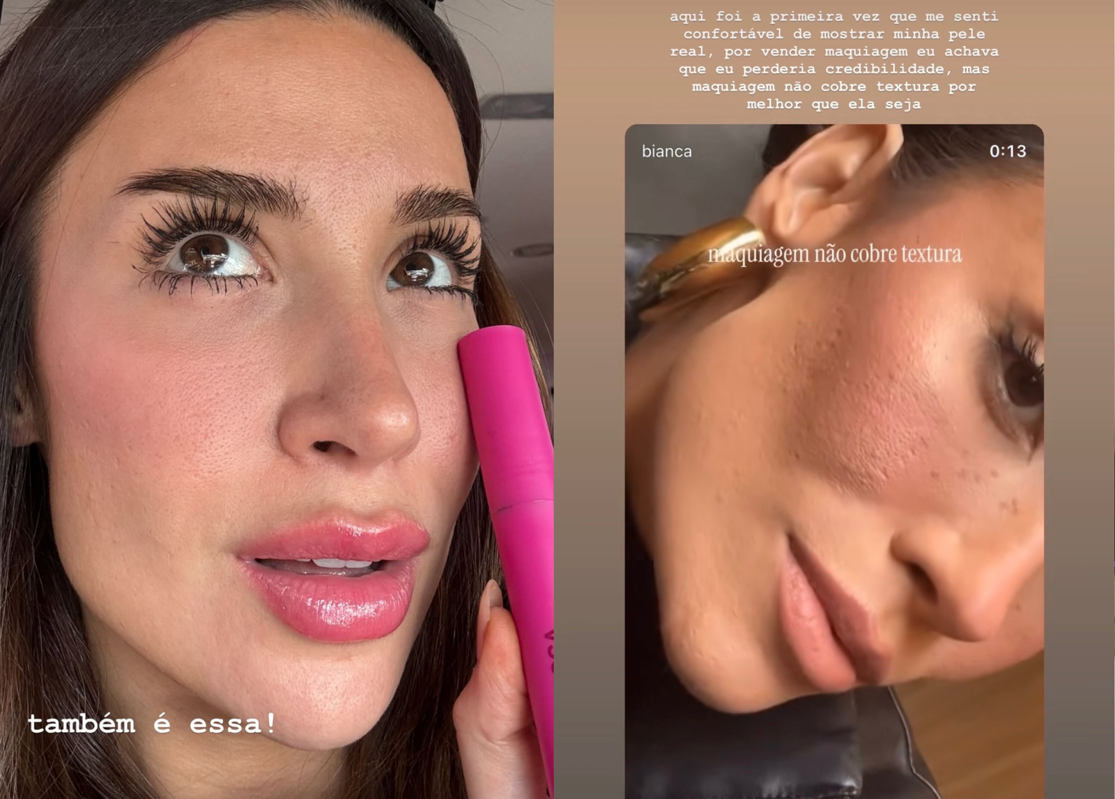 Ao mostrar sua pele real, Bianca reforçou uma mensagem que tem ganhado força nos últimos anos: a maquiagem pode valorizar a aparência, mas não elimina completamente as características naturais da pele.