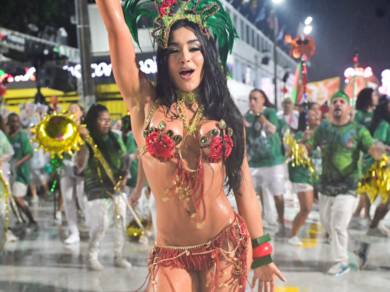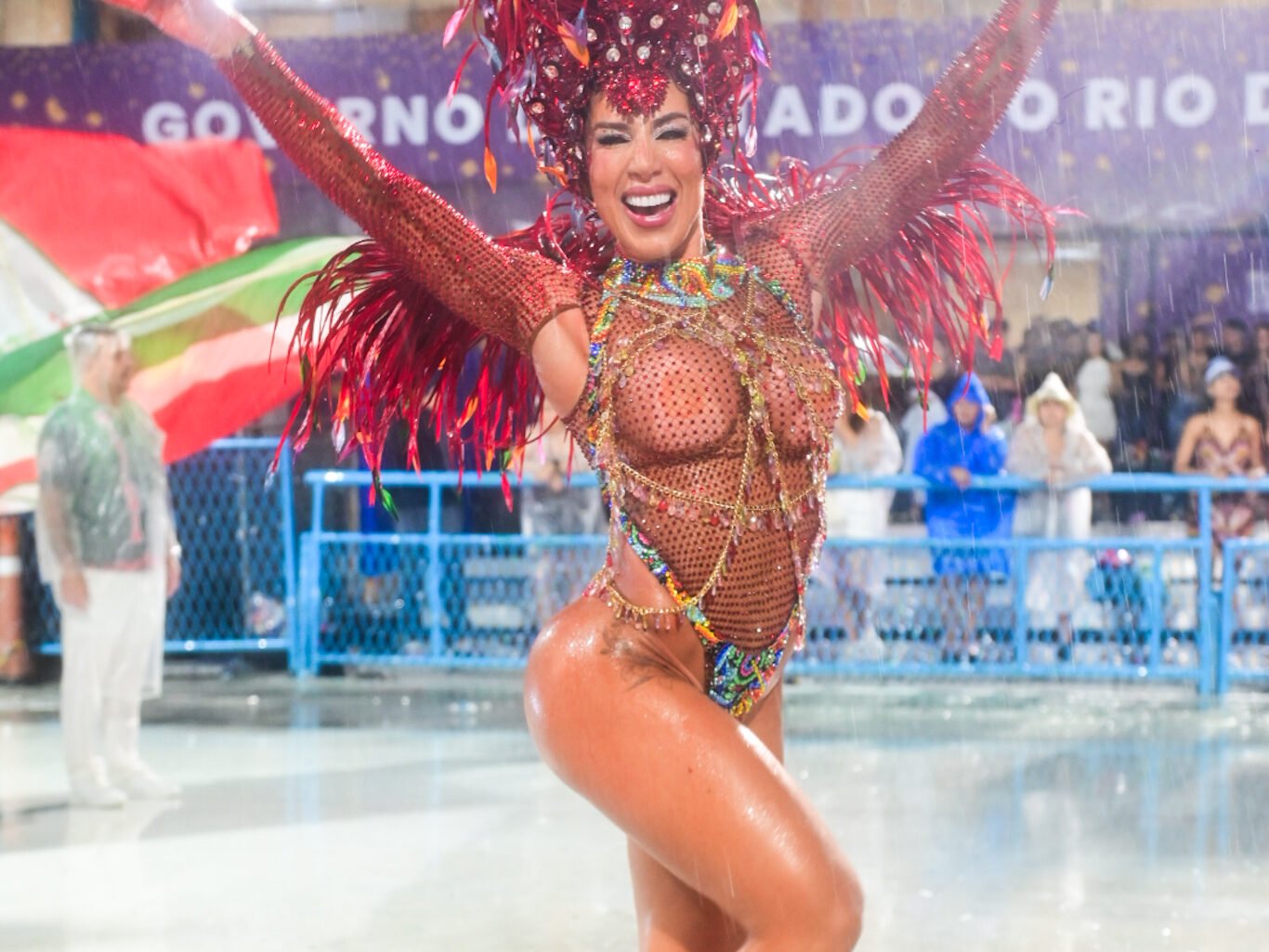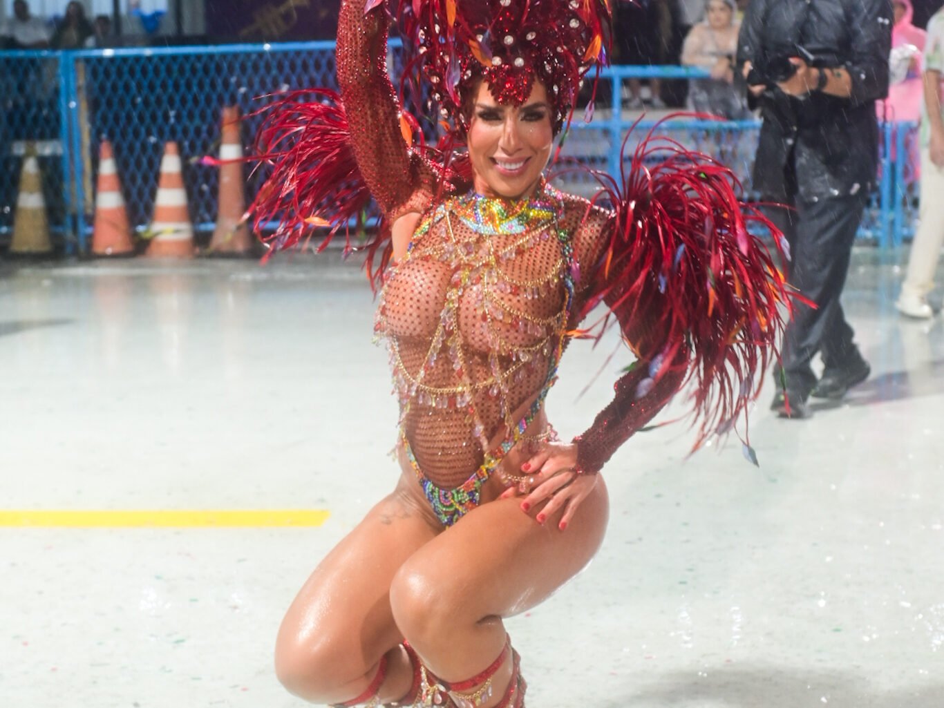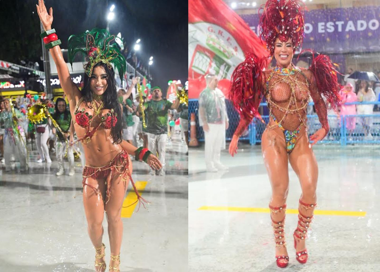 Com looks pensados especialmente para o ensaio técnico, as duas reforçaram o brilho característico da agremiação de Duque de Caxias. Duda Freire apostou em uma produção marcante, valorizando o figurino e a presença de palco, enquanto Tati Minerato mostrou por que já é considerada uma veterana quando o assunto é Sapucaí. A experiência da musa ficou evidente na postura segura e na conexão com os ritmistas.