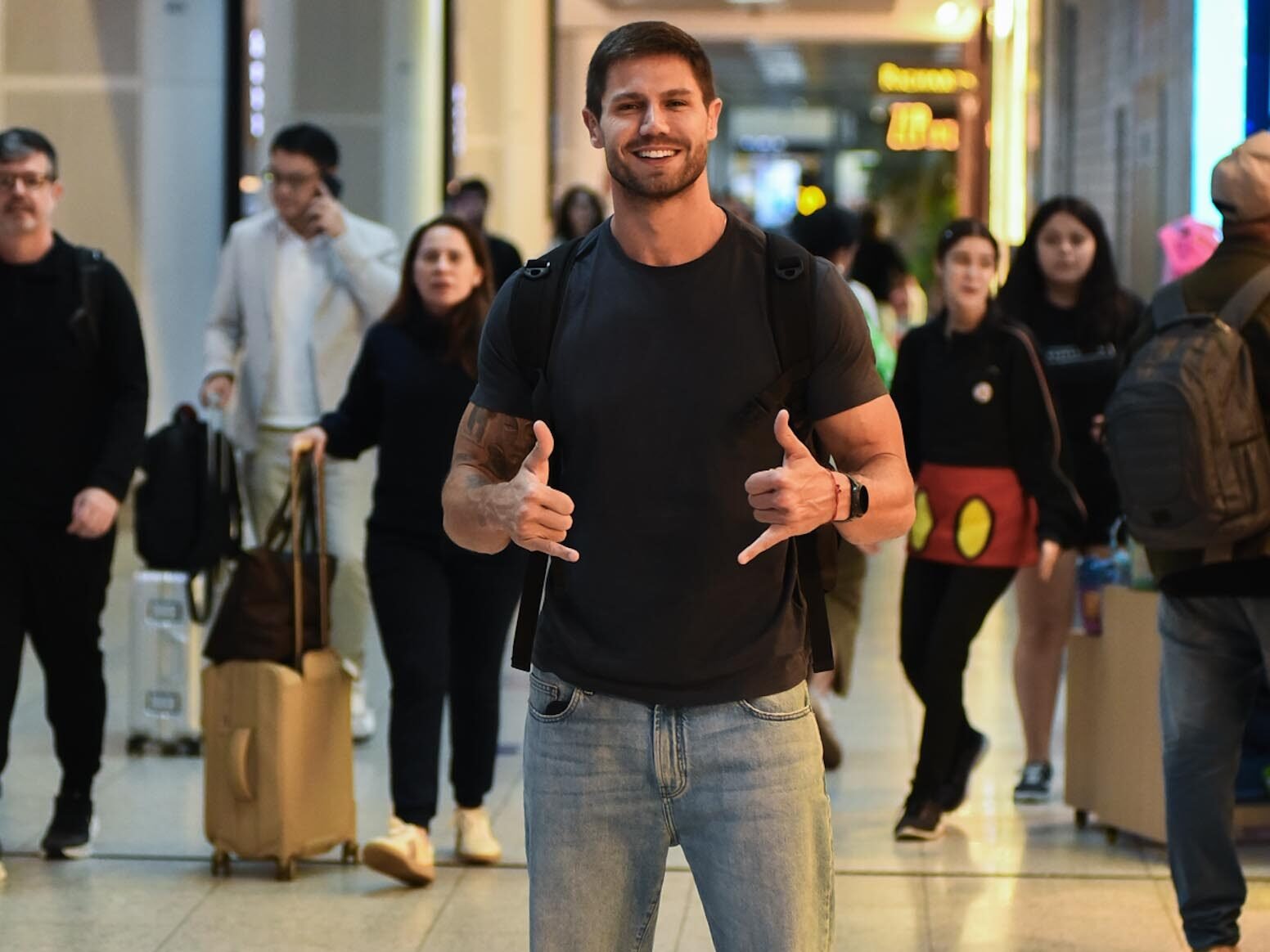 Com um estilo casual e discreto, Jonas caminhava tranquilamente pelo aeroporto, aparentemente focado em seus compromissos. Ainda assim, não demorou para que admiradores se aproximassem ao identificá-lo. A movimentação ao redor cresceu rapidamente, mostrando que o carisma do ex-BBB segue forte mesmo anos após sua participação no reality.