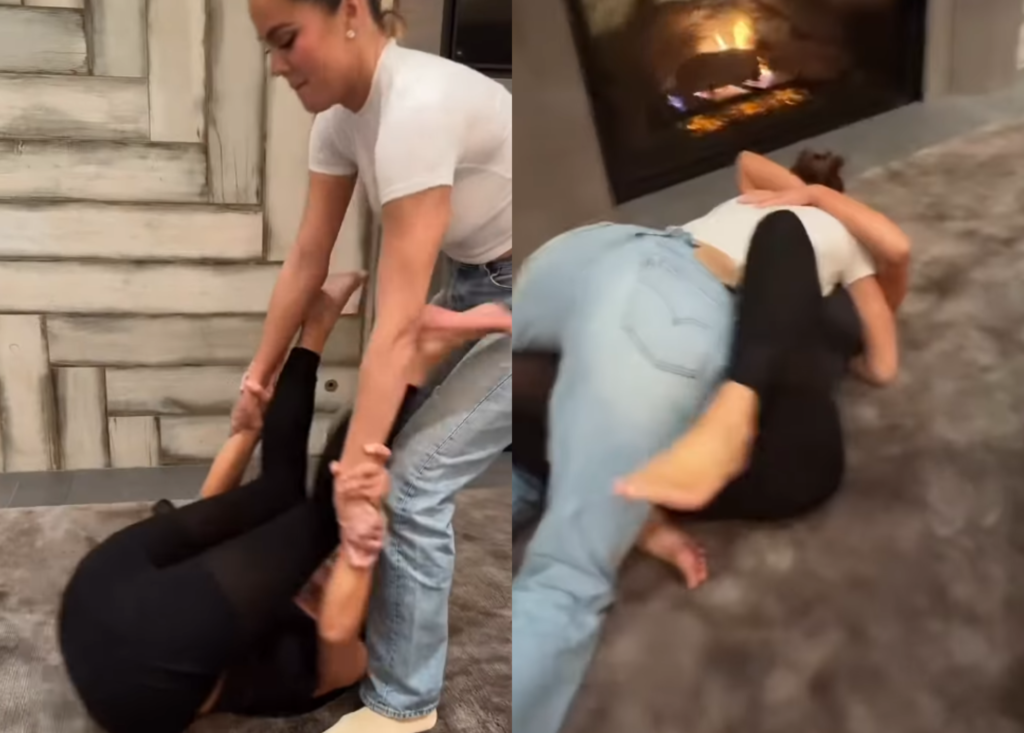 Tudo começou na noite de segunda-feira (9/2), quando Kim compartilhou momentos divertidos ao lado das irmãs. No vídeo, ela tenta repetir uma pose desafiadora, equilibrando-se nas pernas de Khloé Kardashian enquanto ensaia uma cambalhota. A cena já seria suficiente para render comentários pela espontaneidade, mas foi um detalhe sonoro que roubou a atenção: uma risada masculina clara e próxima demais para ser ignorada.