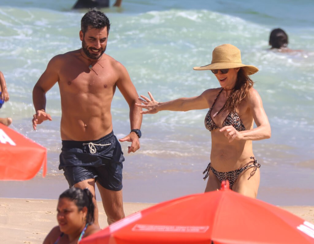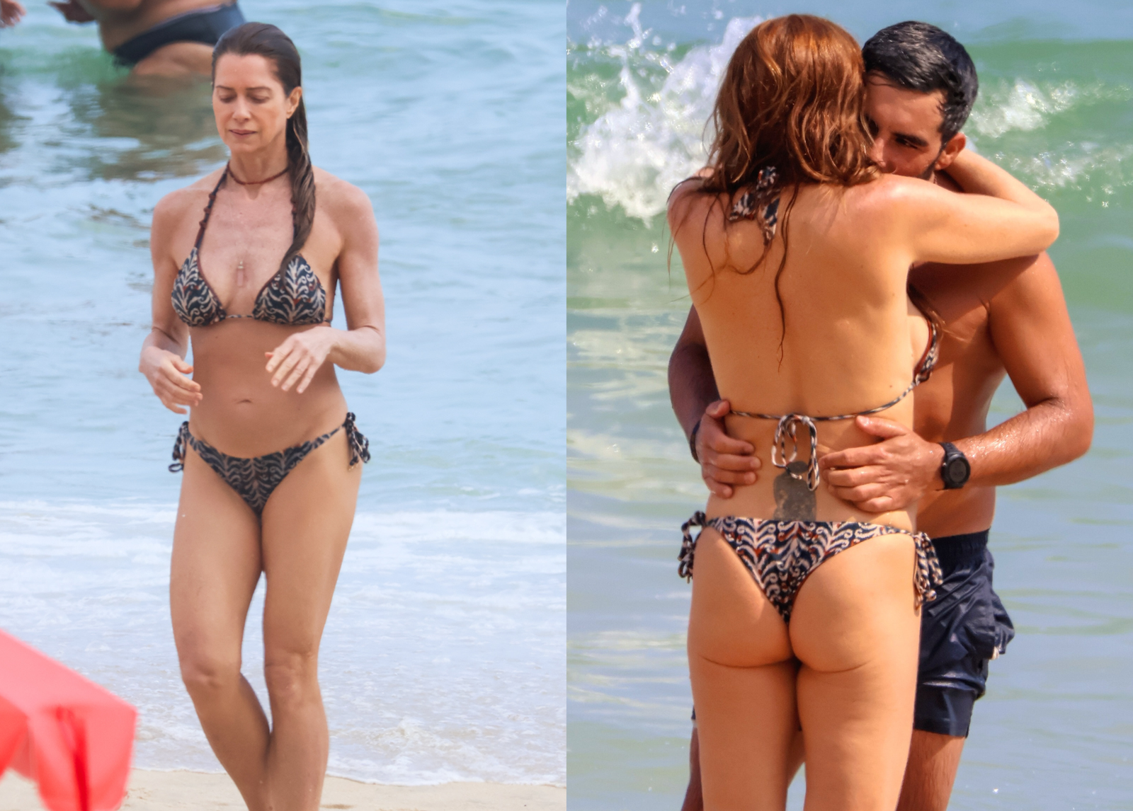 Aos 52 anos, Letícia Spiller curte praia com namorado português