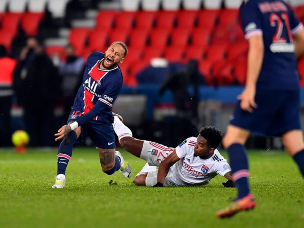 O cenário foi o clássico no Parc des Princes. Já nos acréscimos, Neymar sofreu uma entrada dura de Thiago Mendes. O lance foi forte, lateral e atingiu diretamente o tornozelo do atacante, que deixou o campo de maca e chorando. Inicialmente punido com cartão amarelo pelo árbitro Benoit Bastien, o volante acabou expulso após revisão do VAR.