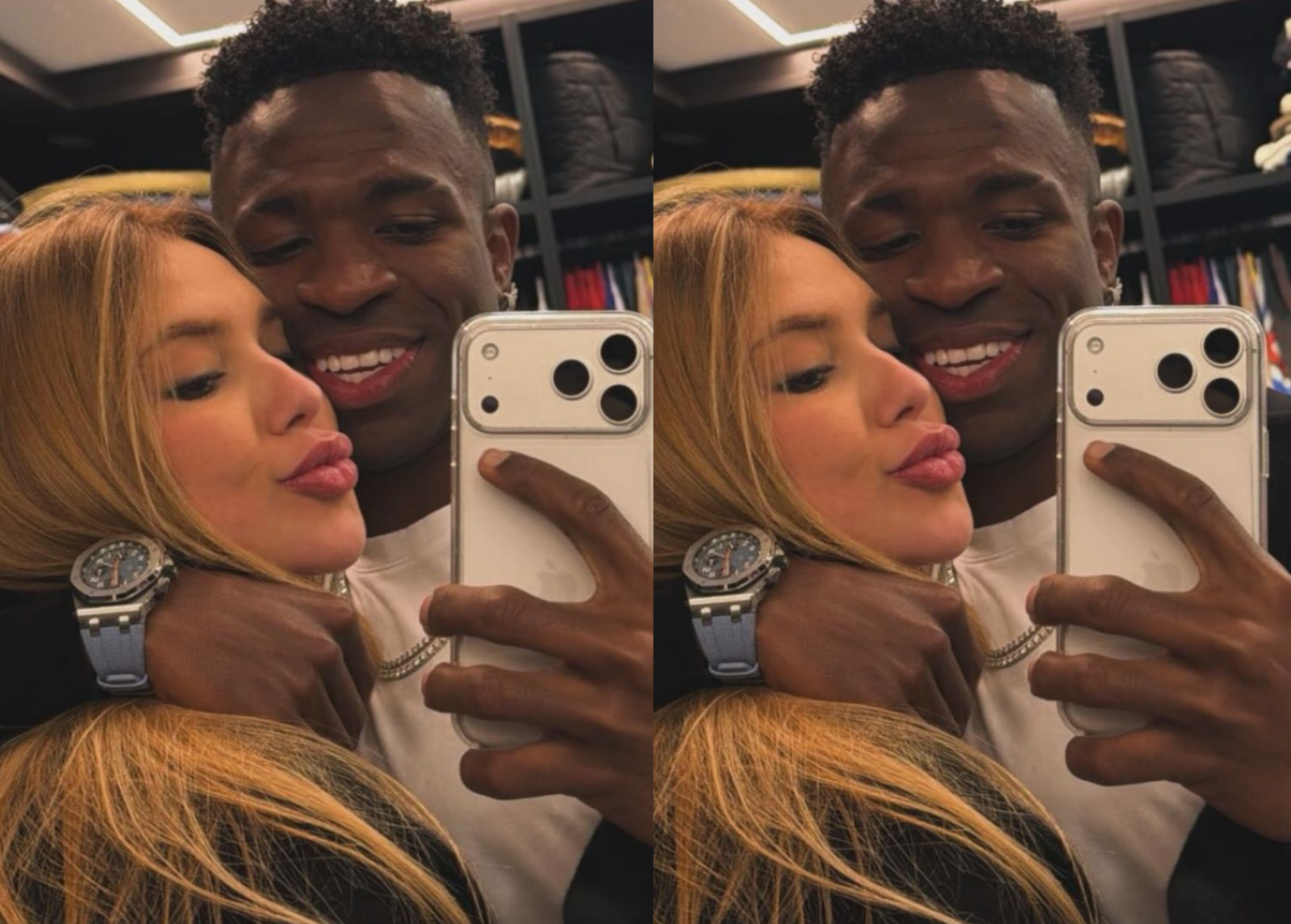 Vini Jr posa com Virginia após chegada da influenciadora a Madri