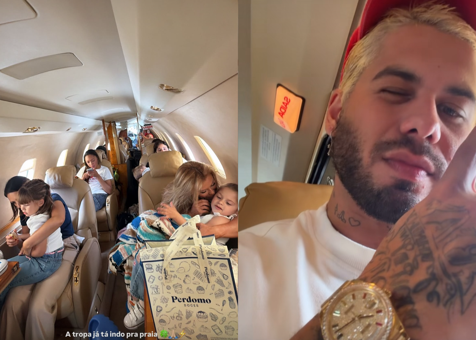 O momento foi compartilhado pelo próprio cantor nas redes sociais. Em um dos registros publicados, ele aparece dentro do jatinho da família ao lado dos filhos, demonstrando animação para o início da viagem. Na legenda da publicação, Zé Felipe resumiu o clima do momento com uma frase descontraída: “A tropa já está indo”.